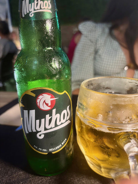 La carta tiene el tamaño perfecto, con unos aperitivos, entrantes para compartir y cinco principales, incluyendo una carne y un pescado. También tienen una carta de cócteles y como dato curioso, tienen una cerveza griega "Mythos".